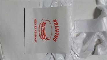 Saljemo brzom postom ili licno preuzimanje kod nas , za vece kolicine popust ili poklon . Prodaja papira u rolni , obican beli papir ili natron braon papir . Namena : zastita namestaja pri radovima na kuci , zastita automobilia , uvijanje hrane i drugih stvari . Sva roba je nova , higijenski ispravna i u fabričkom pakovanju . 1. Pekarski papir bez PE folije Dimenzije 80x60 cm - Cena je 200 din / kg (oko 50 listova je u 1kg) za dolazak kod nas ili za vecu kolicinu cena je niza , 2. Varijanta sa PE folijom je dimenzije 50x30cm - Cena 280 din/kg , 3. Ambalazni papir kao od puding-a ili vanil secera , 150x50cm - Cena 150din/kg , 4. Papirne kese za pakovanje brze hrane i pekarskih proizvoda , 5. Secemo papir u dimenziji po Vasoj zelji , 6. Papirni stolnjaci sirine 1,2m a duzine 10 metara , 8. Veliki ubrusi reciklirani za radionice i beli od celuloze , 9. Velika pakovanja salveta belih za pekare , picerije , fast food kioske . . . 10. PVC kese tregerice trgovacke sa ruckama , strec folije , alu folije , pek papir , jos puno toga . . .