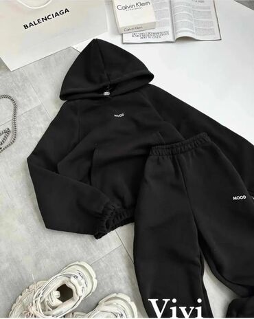 - Detalji: minimalistički natpis “MOOD” na dukserici i na pantalonama; skriveni šavovi za čist izgled
