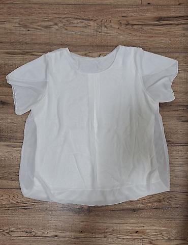 Bela ženska bluza kratkih rukava, idealna za slojevito oblačenje ili nošenje tokom toplijih dana. Lagana i prozračna, pogodna je za različite prilike.