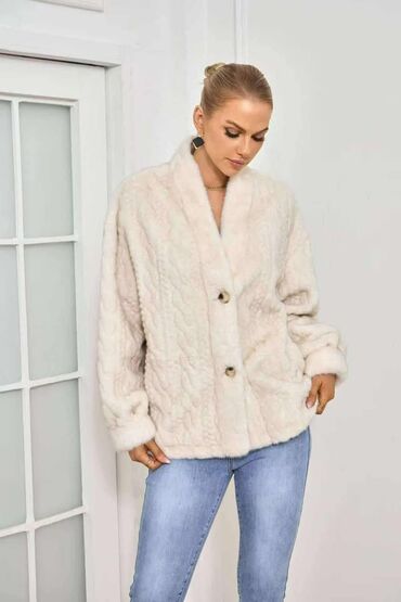Veštačko krznoŽenska jakna/kaput od veštačkog krzna sa teksturom pletenog uzorka.