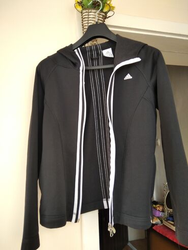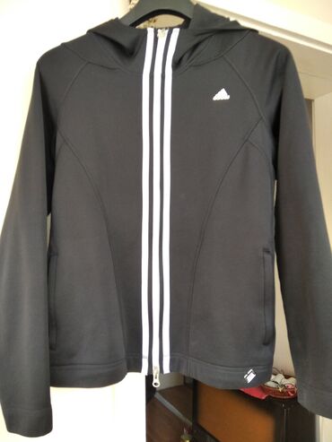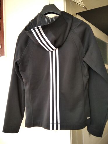 Ženska cropped dukserica sa kapuljačom – crno‑bele horizontalne pruge. - Kroj: skraćen (cropped), opušten fit sa spuštenim ramenima - Dizajn: klasične široke pruge, jednobojni crno‑beli kontrast, ...