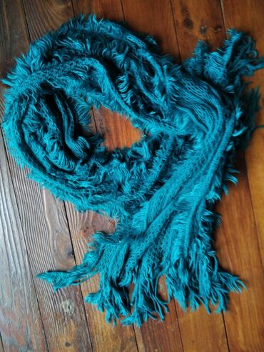 Šal P.S. – presijavajući - Dimenzije: 140 x 30 cm (naznačeno na fotografiji) - Materijal: lagana, prozračna tkanina sa sjajnim, presijavajućim efektom - Dizajn: apstraktni uzorak u nijansama tirki...