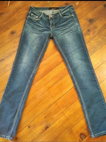 Farmerke svetlo plave,teksas sa trakama celom duzinom sa obe strane.dubok steuk,iscpene na kolenima.Dobro stanje.36 velicina. 200 AKCIJA