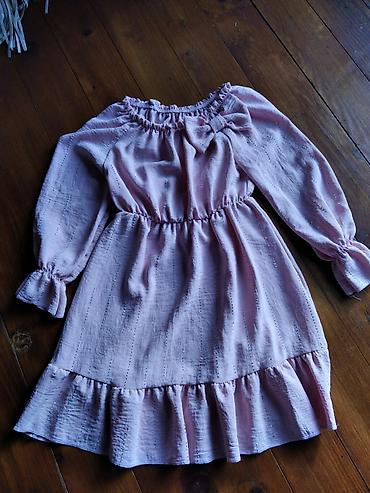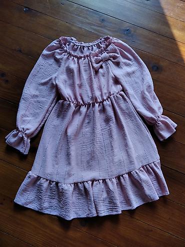 Devojačka haljina – plisirana tila i satenski gornji deo - Boja: puder/roze - Kroj: gornji deo od glatkog, sjajnog materijala sa dugim rukavima; struk blago nabrani volan; donji deo višeslojni til...