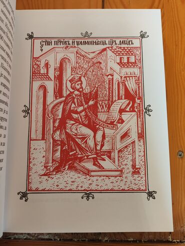 - Naslov „Псалтыр“ na naslovnici, centralna ikona kralja Davida sa harfom