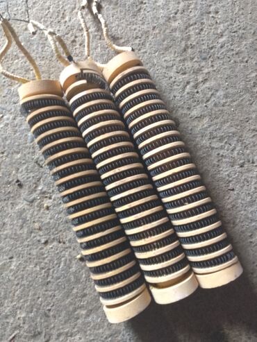 - Oblik/dimenzije: cilindrični ulošci (tri identična komada), dužina približno kao šaka/forearm segment; prečnik srednji (standard za grejne patrone u pećima i sušarama)