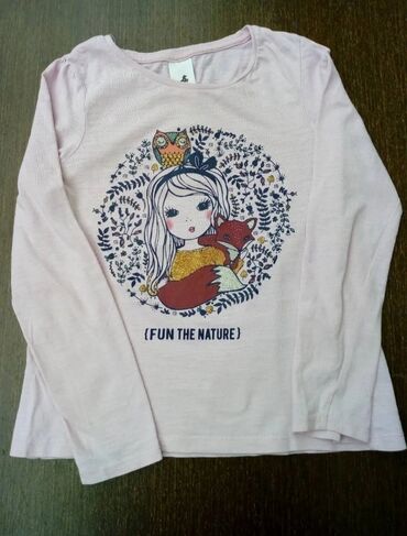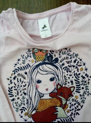 Dečija majica adidas, kratkih rukava, svetloružičaste boje sa velikim ružičastim adidas logom na prednjoj strani. Okrugli izrez. Na etiketi i unutrašnjoj oznaci stoji veličina 7–8Y / 128 cm. Materi...