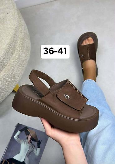 Ženske platforme/sandale UCC - Model: otvoreni prsti sa širokim gornjištem i zadnjim elastičnim kaišem - Gornjište: meki, brušeni materijal sa dekorativnim štepom i metalnim UCC logoom na jezičku ...