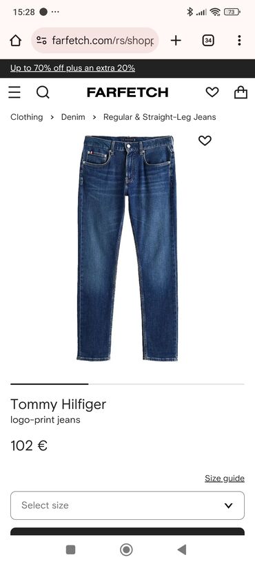 - Detalji: klasičan petodžepni dizajn, rajsferšlus sa kopčanjem na dugme, kontrasni štep, sitni Tommy Hilfiger logotip etiketa na malom džepu