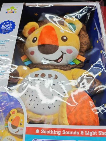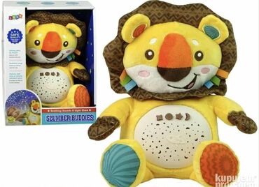 Napomena: radi na baterije (komora smeštena u telu igračke; baterije nisu prikazane). Idealno za rutinu uspavljivanja i smirivanje bebe/ deteta uz svetlosni show i nežne melodije.