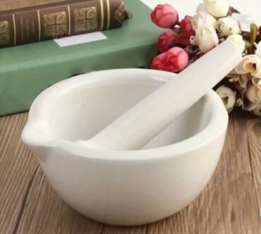 - Sastav: činija (avan) sa izlivenim izljevom za sipanje + odgovarajući tučak