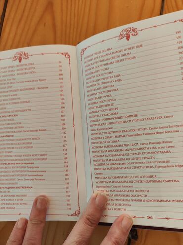 - Садржај са нумерисаним страницама ради лакшег сналажења (пример: молитве после појања стр. 199; молитве за болеснике и у болести крај издања)
