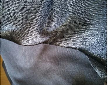 „Srebrno-siv metalik materijal sa efektom promene nijanse u zavisnosti od svetla. Daje luksuzan, svečani izgled.”