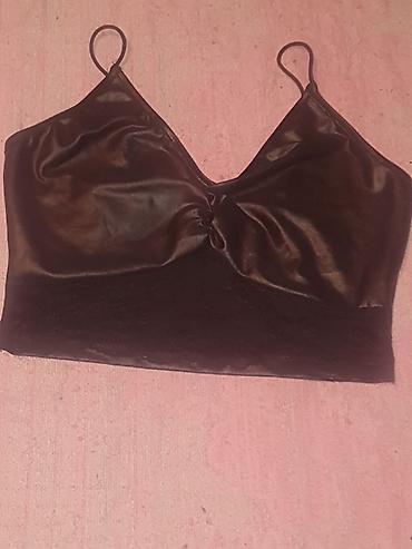 - Kratki top na tanke bretelice: satenski sjaj sa blagim naborom na sredini grudi; donji rub od čipke.