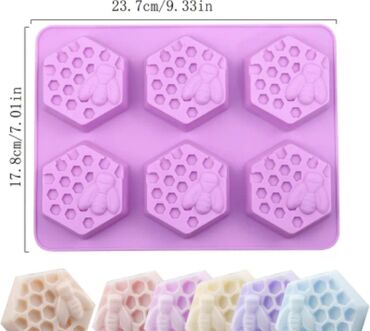 - Set silikonskih kalupa u obliku heksagona (saće) sa reljefom pčelice. Svaka ploča ima 6 kalupa.