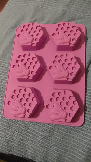 - 6-ćelijski ovalni kalup sa cvetnim i pčelinjim motivima.