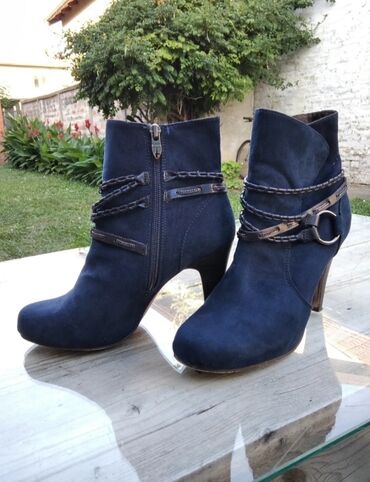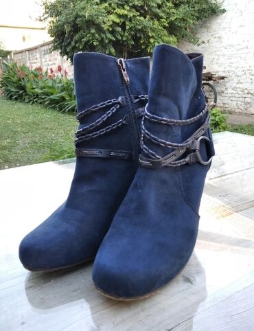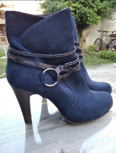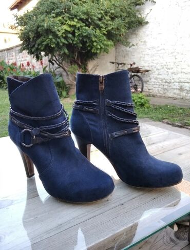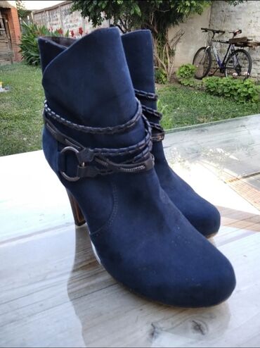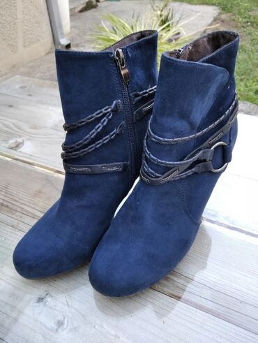 Postavljene čizme gležnjače br. 41. Čizme su izrađene od veštačkog materijala sa đonom koji se ne kliza. Unutrašnje gazište je 27cm, visina potpetice je 5cm. Nošene. Čizme imaju mala oštećenja u ...