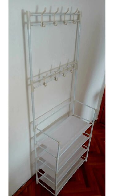 - Gornji deo: dve paralelne letve sa ukupno 12 kuka (6 gore + 6 dole) za kačenje jakni, torbi, kapica, kišobrana