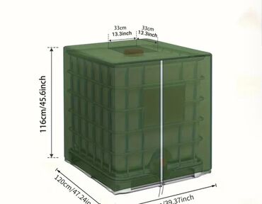 - Dimenzije navlake: oko 120 x 100 x 116 cm (prilagođeno standardnom IBC tanku 1000 L). Otvor na vrhu: 33 x 33 cm, za pristup poklopcu.