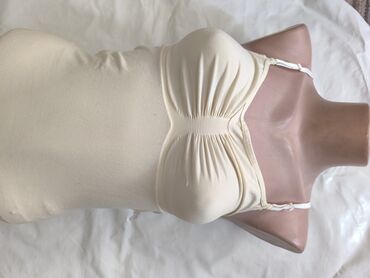 - Kroj: uska, rastegljiva silueta; naboreni deo preko grudi sa centralnim elastičnim prošivom za bolju potporu i oblik