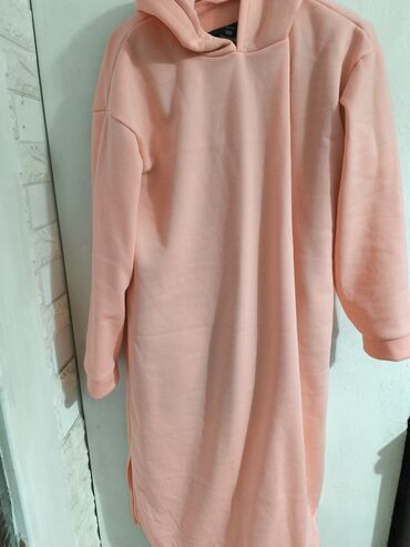 Dugi džemper/haljina sa kapuljačom u puder‑roze boji. - Kroj: ravna