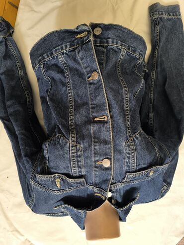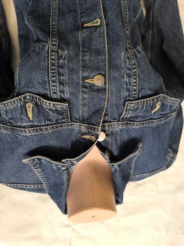 Ženska teksas jakna sa prugama – Q/S by s.Oliver - Materijal: klasični denim u tamnoplavoj boji - Dizajn: vertikalne bele pruge, ravni kroj do struka - Zakopčavanje: metalni dugmići po sredini i n...