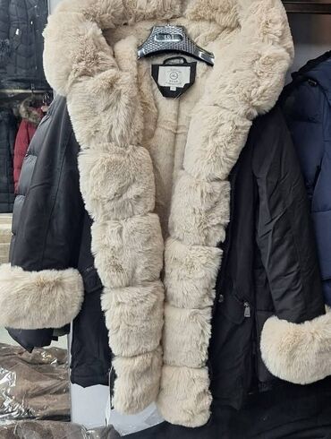 Ženska zimska jakna/parkа u bež boji sa krznenim detaljima. - Velika