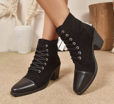 - Dizajn: elegantne gležnjače do iznad članka sa zaobljenim, blago špicastim vrhom i kapicom od glatke eko‑kože u kontrastu sa telom od mekane brušene teksture.