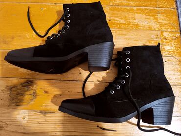 New Trend - Postavljene gležnjače od veštačkog materijala sa đonom koji se ne kliza. Možda jednom obuvene, kao nove. Br. 41. Unutrašnje gazište 27cm, visina pete je 5cm.