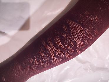 - Model 4: borda (vino) hulahopke sa čipkastim/cvetnim jacquard dezenom. Topliji, elastičan materijal sa sitnom mrežicom u osnovi i istaknutim cvetnim linijama za izražen modni akcenat.