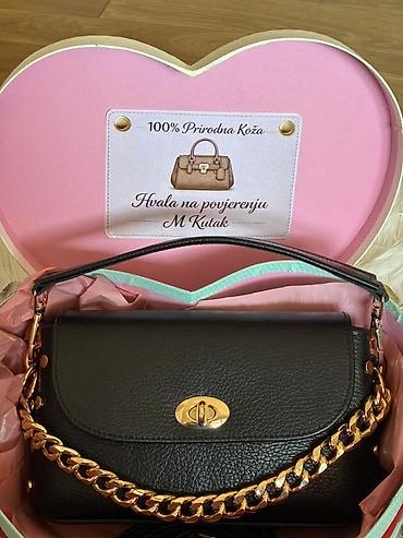 Diskretna, praktična i sofisticirana torba koja lako prelazi iz dnevnog u večernji izgled zahvaljujući kombinaciji kože i zlatnog lanca.