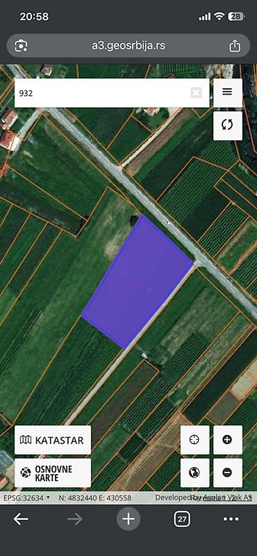 - Katastar: parcela evidentirana na a3.geosrbija.rs pod brojem 932 (vidljivo na priloženim snimcima)