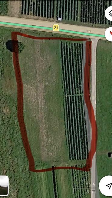 - Pristup: direktan izlaz na asfaltni put sa dve strane (glavni put označen brojem 21 i sporedni put uz parcelu)
