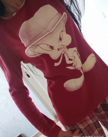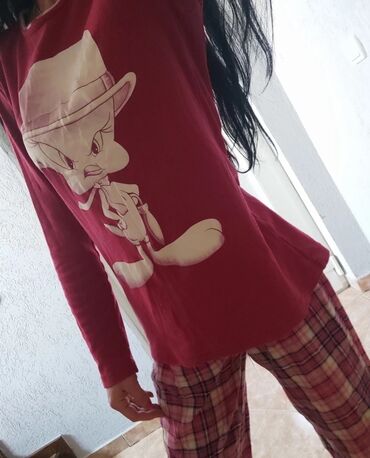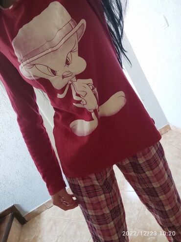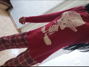 Naslov: Novogodišnje pidžame 1500 din/komplet ⚫ Opis: Ženske novogodišnje pidžame ASMA – komplet majica dugih rukava + dugačke pantalone. Crveni gornji deo sa prazničnim motivima (irvas, “Merry Ch...