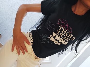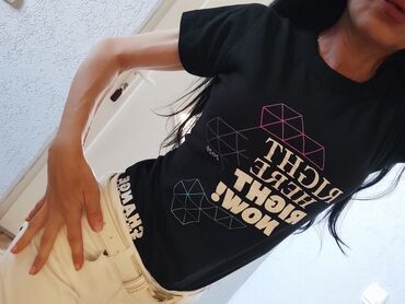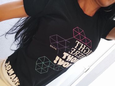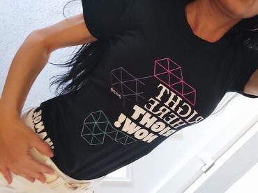 Crna kratka majica Terranova (veličina S) - Brend: Terranova - Model: crop top sa kratkim rukavima - Izrez: duboki V-izrez - Detalj: dekorativni prsten u središtu sa naborima koji oblikuju prednji...