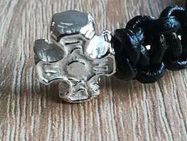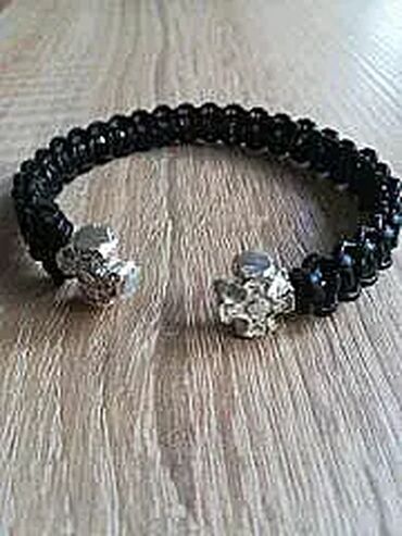 Brojanica koža srebro 925 je ručni rad napravljena od čistog srebra u osnovi sa krstićima sa strane narukvice i napletene crne kože na osnovi narukvice, od jednog krstića do drugog ide srebrne šina preko koje je upletena crna sjajna impregnirana koža debljine 2 mm. Sama narukvica je težine 28 grama.Narukvica se navlači na zglob. Dužina obima je za prečnik zgloba od 20 cm, inače istu narukvicu radimo po dimenzijama poručioca.