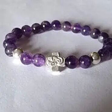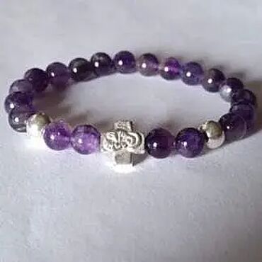 Konac narukvicaBrojanica za ruku od ametista srebro 925 je ručni frad napravljena od perli poludragog kamena ametista u varijanti sa ukrasnim elementima od srebra. Srebrni elementi su perle i krstić. Brojanica je 20 cm dužine u obimu.
