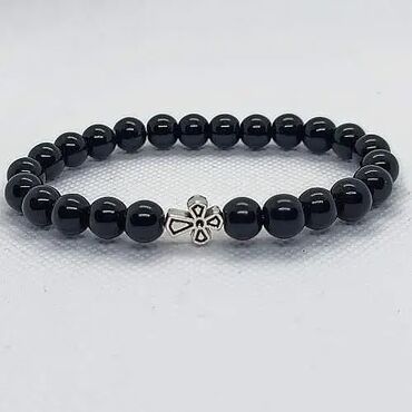 Brojanica za ruku od poliranog oniksa srebro 925 je ručni rad, napravljena od perli poliranog oniksa prečnika perli 8 mm, i elemenata od srebra, krtić je od srebra 3,70 grama i kopča takođe od sreb...