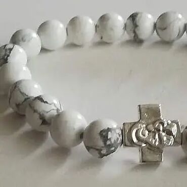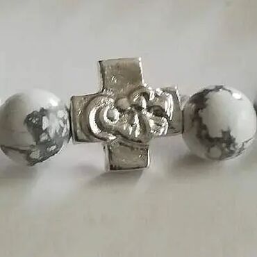 Brojanica koža srebro 925 je ručni rad napravljena od čistog srebra u osnovi sa krstićima sa strane narukvice i napletene crne kože na osnovi narukvice, od jednog krstića do drugog ide srebrne šina...