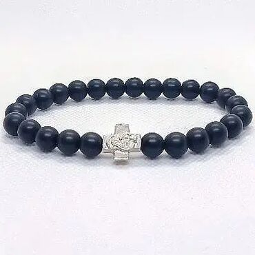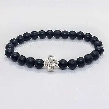 Brojanica za ruku od poliranog oniksa srebro 925 je ručni rad, napravljena od perli poliranog oniksa prečnika perli 8 mm, i elemenata od srebra, krtić je od srebra 3,70 grama i kopča takođe od sreb...