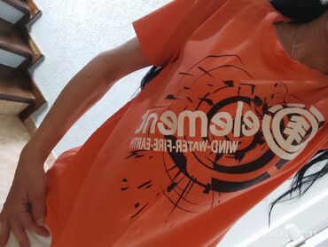 Ženska majica kratkih rukava sa živopisnim printom u toplim nijansama crvene, narandžaste i žute, sa svetlijim apstraktnim floralnim motivima. Okrugli izrez, blago strukiran kroj i dužina do kukova...400 RSD