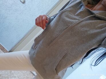 Siva dukserica bez kapuljače, klasičan kroj. Materijal: mekani pamučni duks sa elastičnim ranflama na rukavima i na dnu. Okrugli izrez, dugi rukavi, minimalističan dizajn pogodan za svakodnevno noš...