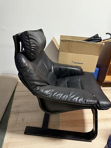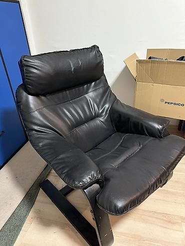 Kožna lounge/fotelja u crnoj boji - Duboko, široko sedište sa debelim