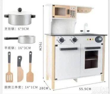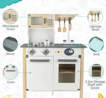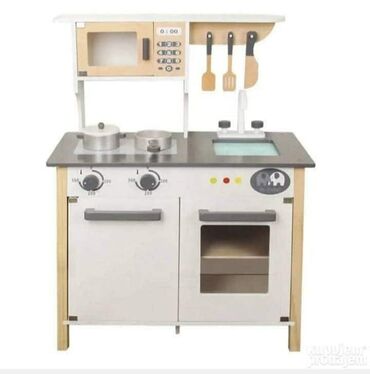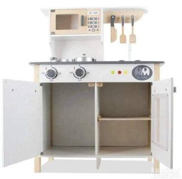 O trošku kupcaDecija drvena kuhinja sa sudoperom, sporetom, rernom i mikrotalasnom. Za decu od 36 meseci. Cena: 15.500
