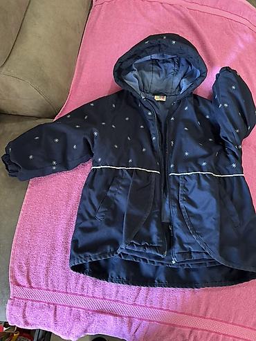 OVS jakna,kupljena u Trstu,nosena par puta. Vel.5/6,postava je pamucna,a spolja je gumirana,jakna je super za prelazno vreme,teget plava boja,maksimalno ocuvana