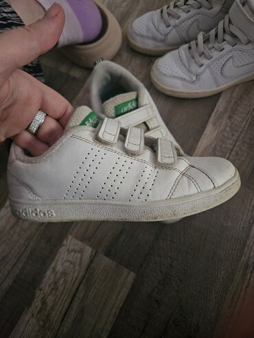 Bele dečije patike marke Adidas sa tri čičak trake za lako obuvanje i