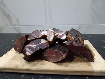 Autentičan domaći ukus tradicionalne sušare – bogata aroma dima i prirodna crvena boja mesa.