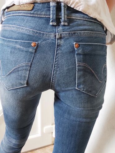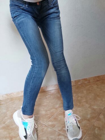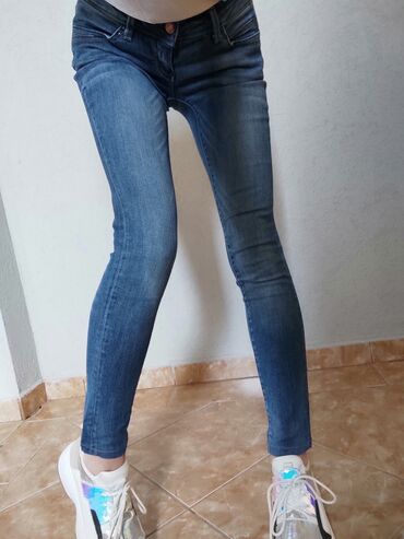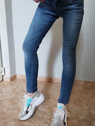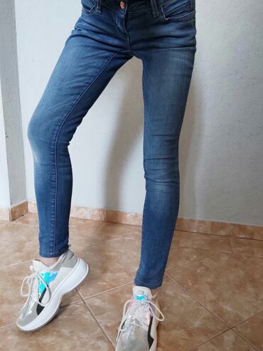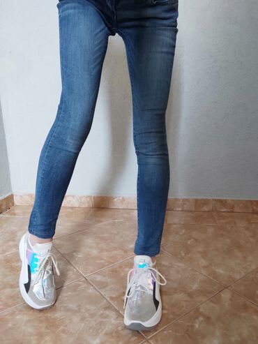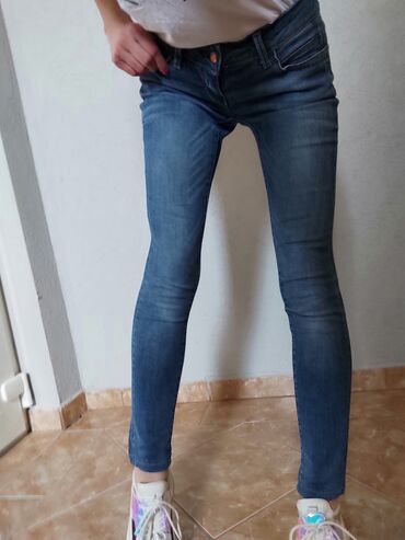 Rastegnute farmerke od svetlog, ispranog teksasa sa izraženim „distressed“ detaljima. Model sa 5 džepova, rajsferšlus i metalno dugme, petlja za kaiš. Visina struka srednja do viša, nogavice ravnij...