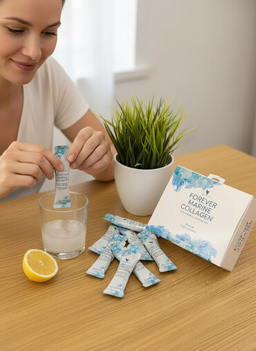 - Forever Marine Collagen – tečni morski kolagen u pojedinačnim kesicama. Sadrži vitamin C, biotin i cink. Praktično pakovanje za svakodnevnu upotrebu.