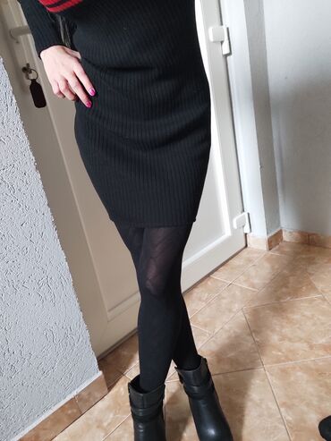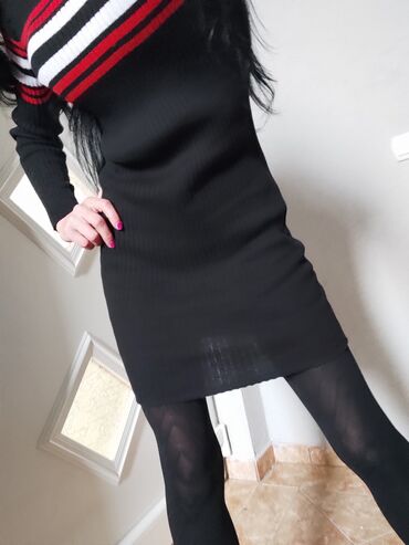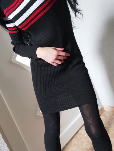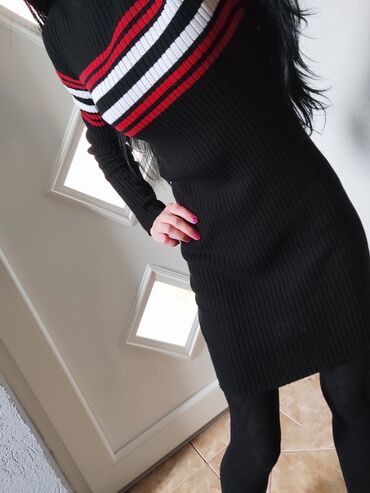 Ribana džemper-haljina, tamnosiva/ugalj boja. - Kroj: uska silueta, midi dužina (ispod kolena), bočni šlic za lakše kretanje - Materijal: elastičan plet (rebrasti dezen) koji prati liniju tela i p...
